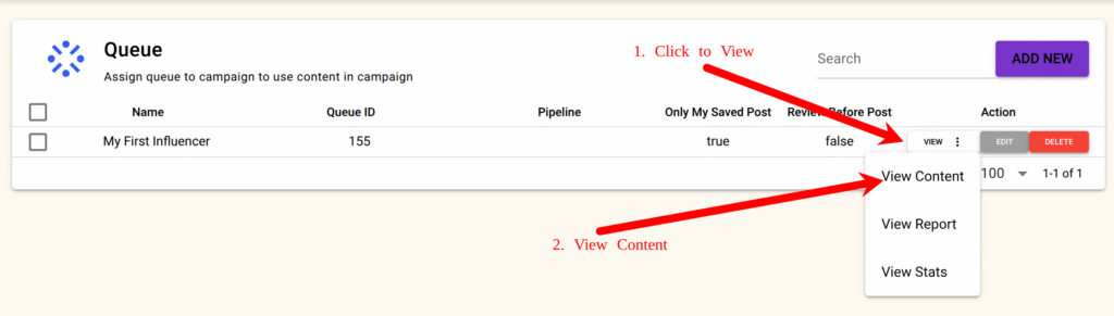- Next, click View → View Content on your newly created content queue.