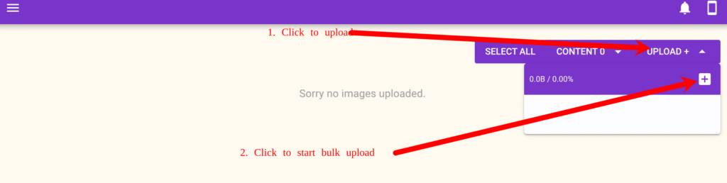 - Click the + Upload icon and upload all your prepared images.