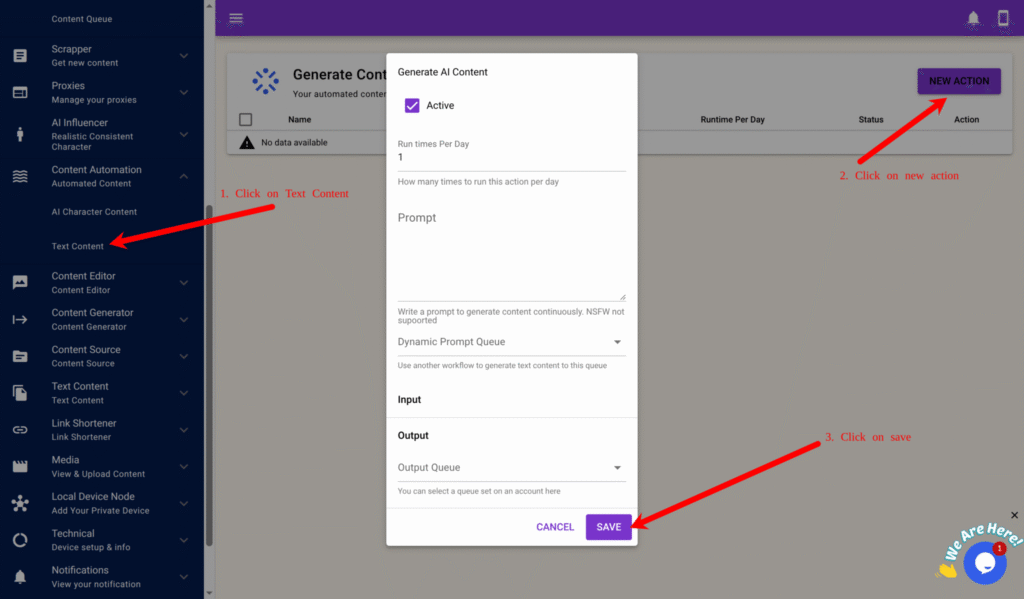 You’ll use SocialAppFarm’s Text Content Automation to generate caption text and overlay it on images or short clips. Create a content queue Model Quote Texts